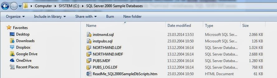 Kurulum sonras bilgisayarımızın kök klasöründe oluşacak SQL Server 2000 Sample Databases içeriği resimdeki gibi olacaktır.