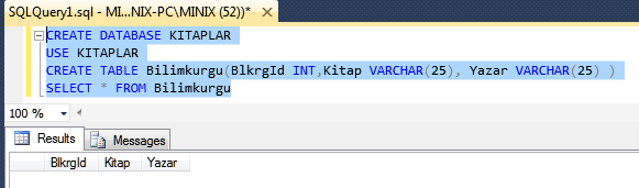 CREATE TABLE Bilimkurgu(BlkrgId INT,Name VARCHAR(25) )