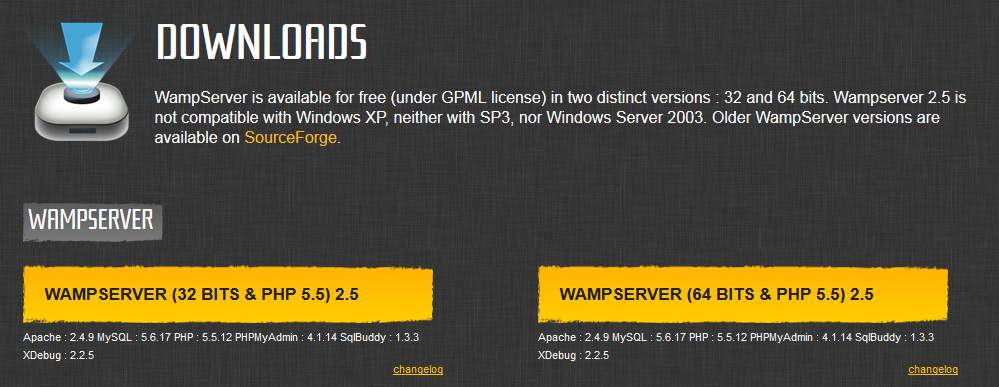 WampServer türevinde türünde yaygın olarak kullanılan birçok sunucu paketi mevcut.